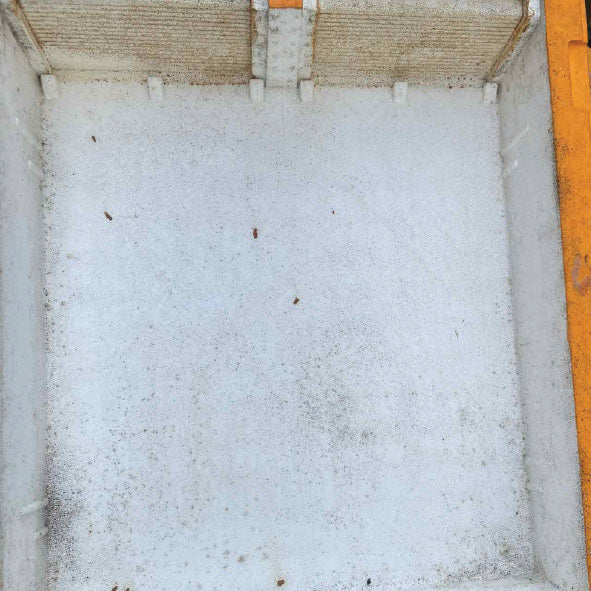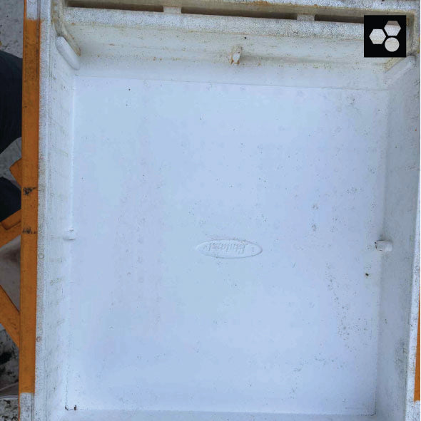 Conny says he was surprised by how effective the product was. He mixed 30 liters of the solution in a feeder box and let it sit overnight. "All black mold spots were gone," he says, adding that even his tools and gloves looked like new. This is a huge advantage, as cleaning tools and removing propolis was previously a time-consuming and tedious task.